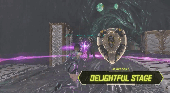 从视频中我们可以看到,这是一位以音乐为主题的角色,使用任何技能都会为其积攒“灵感量表”,允许luna使用增强技能。使用主动技能“舞台存在”后会将武器转换为她的独特武器,准星中会按照特定节奏持续出现圆形“鼓点”,按照节奏射击将会提升伤害,就像是在玩音游一样。