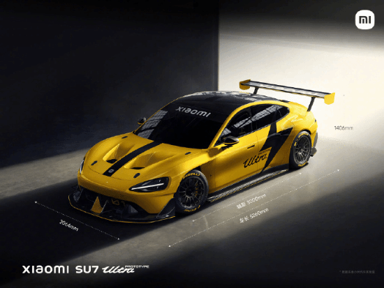 小米SU7 Ultra原型车采用全碳设计,拥有超大固定尾翼等组件,配备三台小米自研的V8s电机,最高转速可达27200rpm,全球最高,在三电机的加持下,新车零百加速仅1.97秒,极速超350km/h。