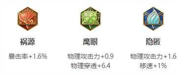 孙尚香铭文搭配铭文推荐:祸源、鹰眼、隐匿