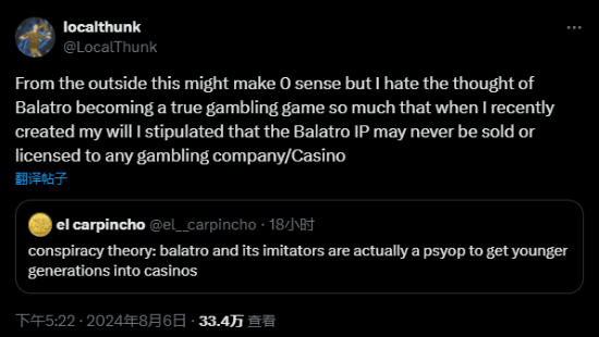 游戏发行商Playstack此前也发布声明表示:“《小丑牌》的开发者坚决反对,我们已尽心尽力确保游戏不包含任何形式的机制。”