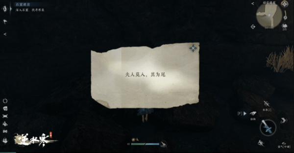 回到从薄冰跳下来的位置,打开宝箱,获取独珍装备拂霓裳之后深入内部,获取三条线索: