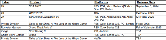 Rockstar Games母公司Take-Two发布2025财年第一季度业绩报告。数据显示,该季度净预订总额为12.2亿美元,表现符合公司预期。