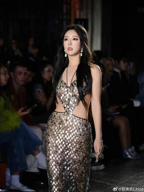 据媒体报道,赵奕欢米兰时装周压轴走秀,露背造型性感优雅,亮片随走动呈现波光粼粼的效果,十分吸睛。