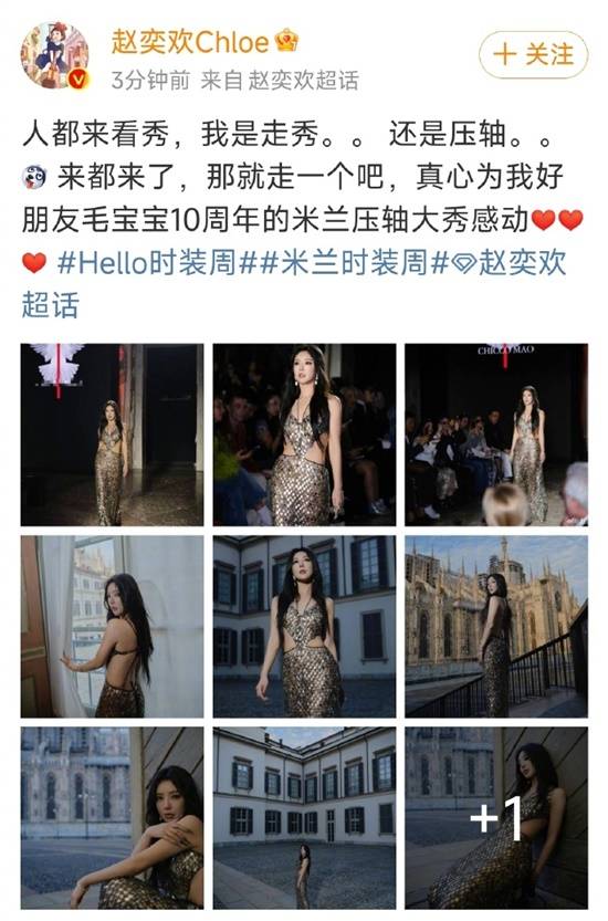 赵奕欢米兰时装周压轴走秀 时尚露背装造型吸睛