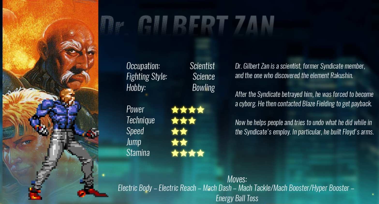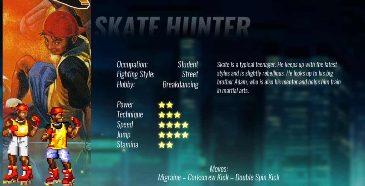 第一关第一幕关底小boss,后期就当精英怪随便出现了。会开枪,子弹伤害还可以,总是躲在远处偷袭。近距离会背负投,还会打你肚子……是少数可以卡版边的敌人,把他打进版边,他总是执着的走出来才攻击,而其他敌人就藏在版边不出来了。