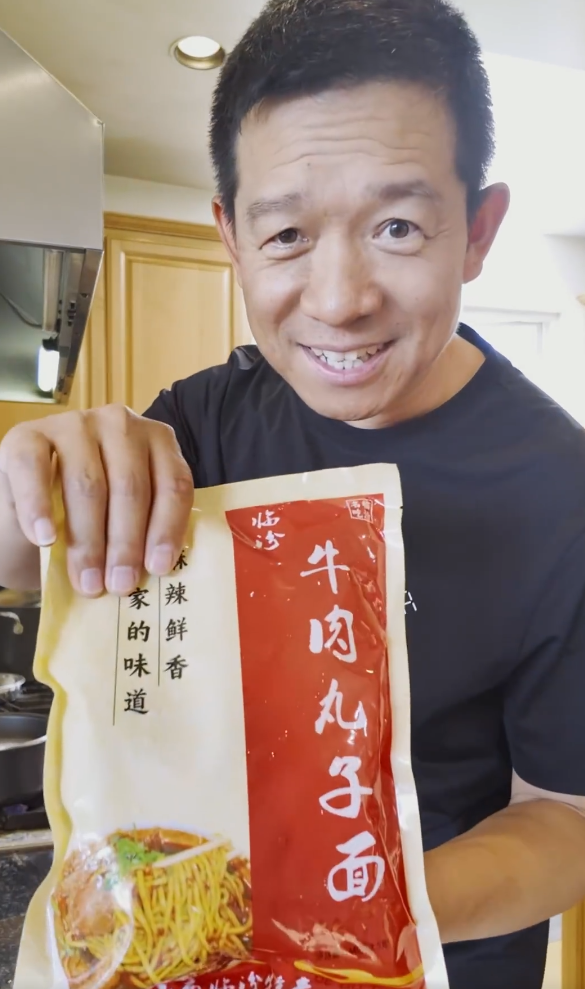 贾跃亭吃上老家的牛肉丸子面 感叹每一口都藏着家的味道