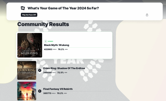 王者归来:《黑神话:悟空》重新登顶IGN年度游戏投票榜!