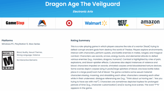 今日,《龙腾世纪4:影障守护者》已经通过了ESRB评级,评级为M级,适合17岁以上的玩家游玩。