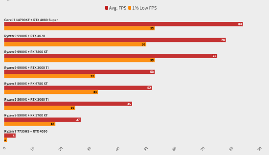 测试人员指出,在高端配置系统(例如Core i7 14700KF和RTX 4080 Super的组合)上,游戏在4K分辨率、最高画质预设下运行相对流畅,前提是启用了DLSS等升频技术和帧生成功能。如果关闭帧生成,表现尚可,但不够稳定。