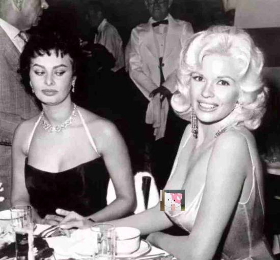 这张是索菲亚·罗兰(Sophia Loren)和简·曼斯菲尔德(Jayne Mansfield)1957年的著名胸器照片。
