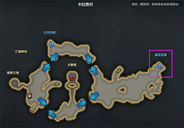 3、根据下图的最新指示,玩家可以寻找到哀叹沼泽。