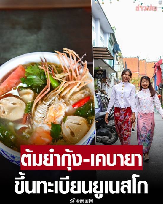 泰国冬阴功申遗成功 将举办"冬阴功与娘惹衫"庆祝活动