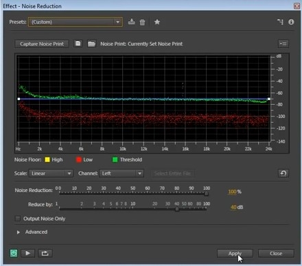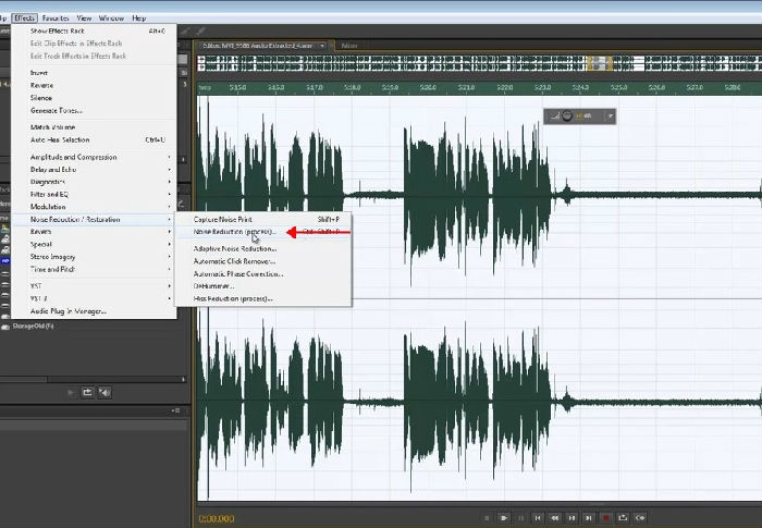 全选整个音频片段,选择NoiseReduction选项,进行降噪处理。
