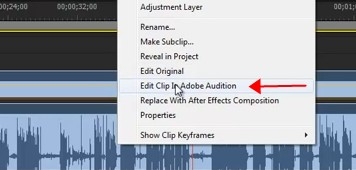 在Premiere中音频轨右键,选择用Audition编辑片段。