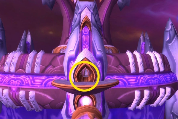 2、到达虚空风暴的风暴要塞后可以看到一座非常大的建筑,这里有多个五人副本,作为团队副本的风暴要塞入口自然在建筑正中间(如下图)。