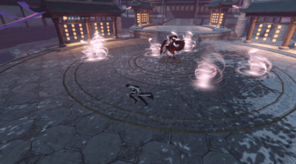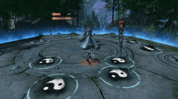 雷音的扇形攻击技能【一笑人间掌】,持续对前方打出音波后,最后一击还会在场地的大量位置生成【八卦】。【八卦】在短暂时间后便会引爆,对站在上面的玩家造成巨额伤害。