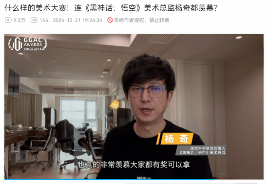 在第六届GGAC大赛(全球游戏美术概念大赛)颁奖典礼昨日举办,多位行业大佬通过录制视频的方式送上寄语,刚从美国回来、因为感冒没有来到颁奖现场的杨奇也出镜了。