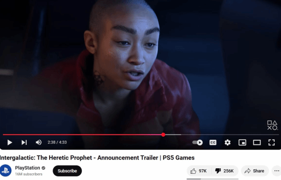 顽皮狗新作《星际:异端先知》首支预告发布后,女主形象在网络上引发了激烈的讨论。截止至发稿时,PS官方在Youtube发布的《星际:异端先知》预告片点踩数已经来到了惊人的25.6万踩,点赞数仅为9.7万,差评率高达72.5%。