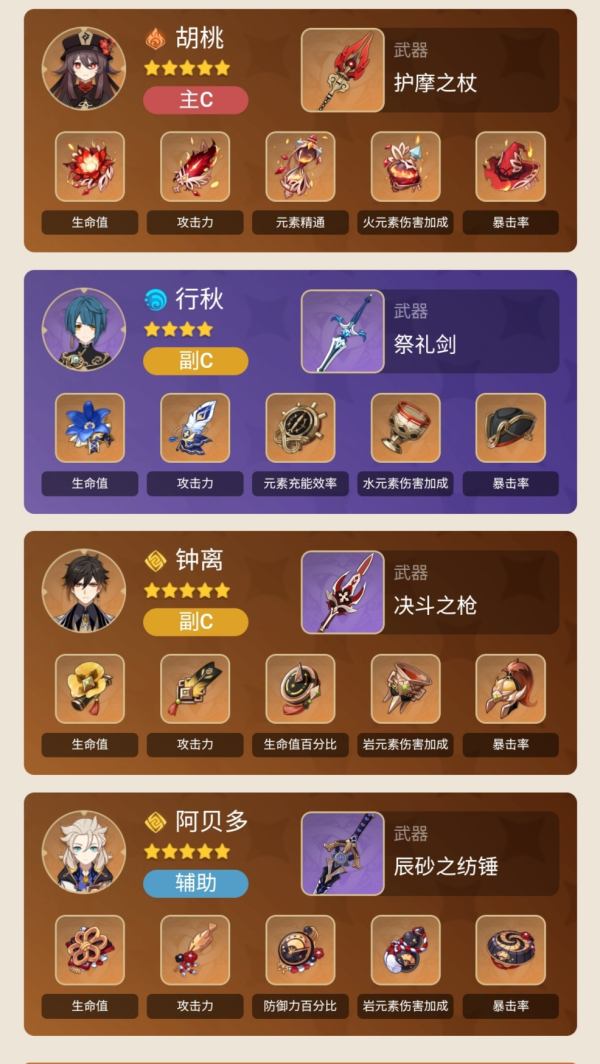 注:双岩体系且有岩共鸣,钟离可以从辅助转为副C提高收益。