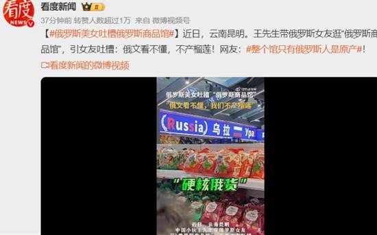 近日,俄罗斯商品馆在全国各地疯狂开店,王先生带俄罗斯女友逛“俄罗斯商品馆”,引女友吐槽:俄文看不懂,不产榴莲!网友:整个馆只有俄罗斯人是原产!