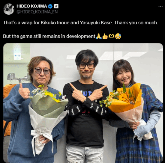 日前,游戏制作人小岛秀夫发文透露了《死亡搁浅2》开发工作最新进展,井上喜久子和加濑康之的配音工作已经完成。