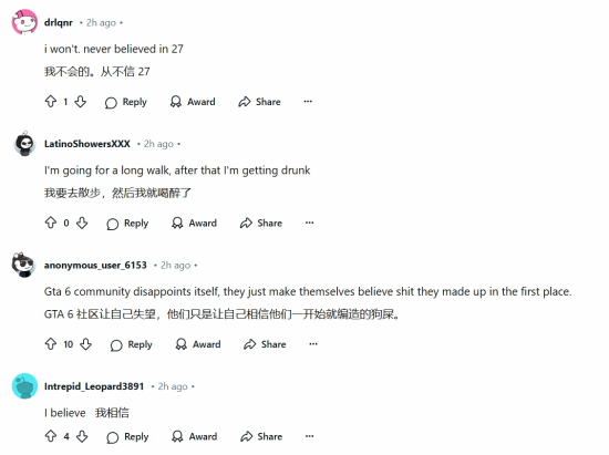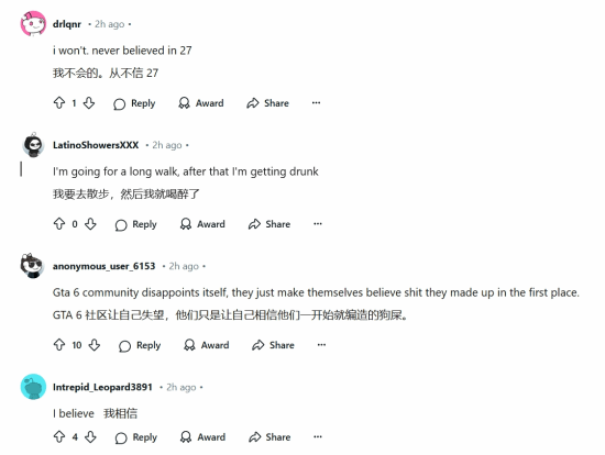 “GTA6 社区总是让自己失望,他们只是相信自己编造的狗屎。”