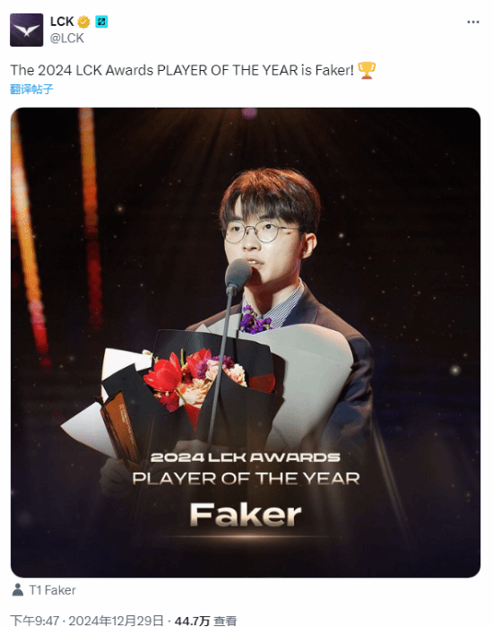 近日,T1战队选手Faker斩获LCK年度最佳选手和OP.GG年度搜索王两项荣誉。据韩媒记者消息,在发表获奖感言时,Faker特意向韩国务安国际机场不幸遇难的乘客表达了哀悼。