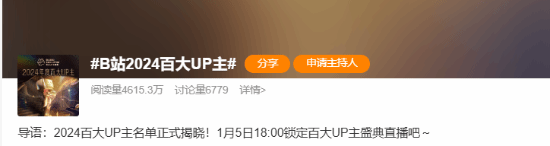 2024百大UP公开上热搜 网友热议:看今年谁被暗杀