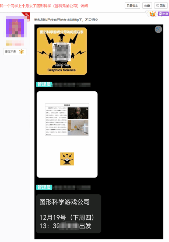 有吧友日前在黑神话吧发帖,表示自己的一个同学在上月去了游戏科学的兄弟公司图形科学访问,说道:“游科那边已经有开始考虑做新IP了,不只《黑神话:悟空》。”