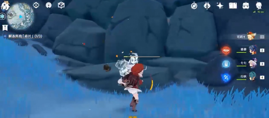 【注意:这里的碎片都是在半空中,建议队伍中配备一个弓箭手远程解冻碎冰】