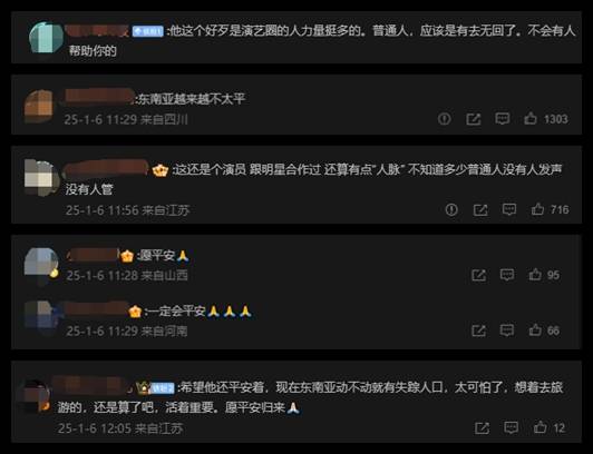 中国驻泰国清迈总领事馆的回应引发广泛关注。许多网友在为事件中的演员祈愿平安的同时,也感叹东南亚地区日益复杂的安全局势,尤其是层出不穷的诈骗手段令人防不胜防。与此同时,有网友指出,当事人作为娱乐圈从业者,凭借较广的人脉能够引发更多社会关注,但普通人若遭遇类似情况,可能会陷入极度绝望的境地,令人倍感无助。