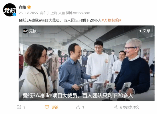 叠纸国产3A魂like《万物契约》大裁员 百人团队仅剩20多人