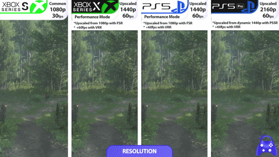 博主ElAnalistaDeBits发布《天国:拯救2》主机各平台画面对比,通过PSSR技术,PS5 Pro能获得几款主机中最好的画面规格。