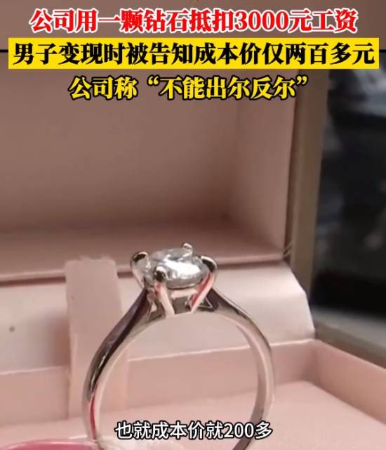公司用钻石戒指抵扣3000元工资 变现时被告知成本价仅两百多元