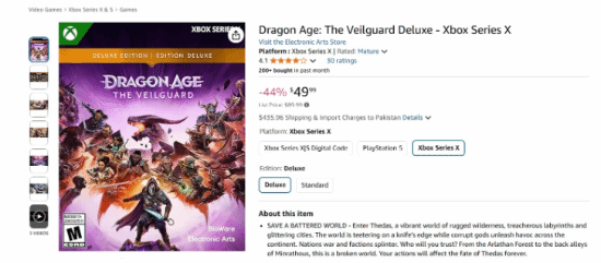 据了解,在亚马逊和百思买网站上,游戏的标准版价格已被下调30美元,现在仅售40美元。这意味着你可以以43%的折扣购买Xbox Series X或PlayStation 5的实体版。此外,游戏的豪华版在亚马逊的售价也降到了几乎一半,原价89.99美元,现在只需49.99美元。