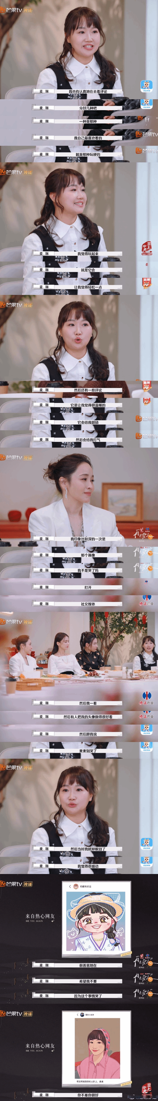麦琳透露平时会看评论,很喜欢那些玩梗的评论,也曾被网友为自己重新绘制的卡通头像安慰到。