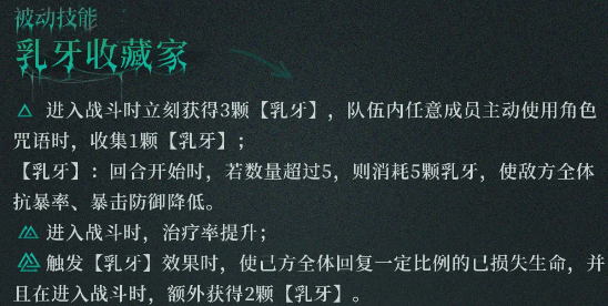 2、被动触发时全体回复一定比例生命,额外获取两个乳牙。