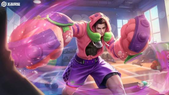 拳王达摩身穿粉粉的毛绒卫衣搭配黑色训练装,带耳朵的可爱帽子包裹着他干净利落的短发,就算身着喵喵装也无法掩盖拳王的冷冽气质!该皮肤将于1月28日0点上架商城出售。