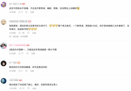 饺子两部电影登顶中国导演票房榜 网友:爽文保守了
