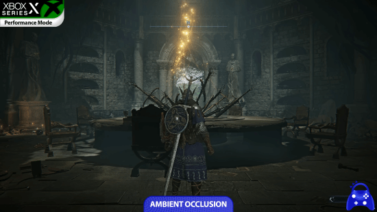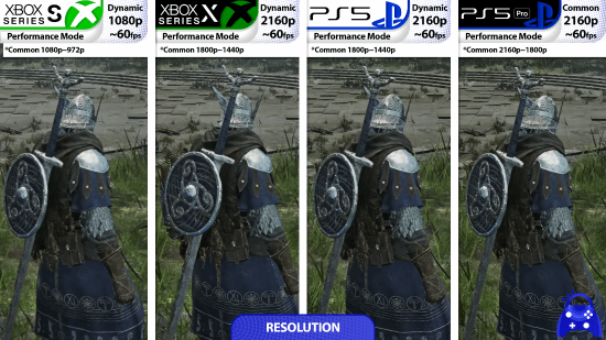 评测者表示《黑夜君临》相较原版《艾尔登法环》并没有出现较大的视觉或性能变化,没有一个版本能够在非动态的情况下在性能模式里跑到60fps。PS5和PS5 Pro版本在纹理和绘图距离方面存在问题,而在Xbox上表现出色。XSS对某些场景下的的植被数量和环境遮挡进行了一些削减。该频道认为FS社应加强图形引擎的更新优化,因为目前的性能完全承载不了这么好的视觉效果。