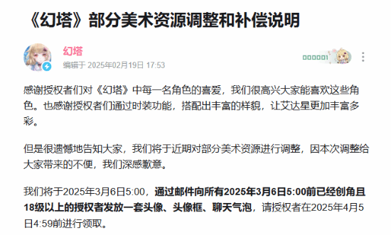 18级以上的玩家可以获得补偿,包括头像、头像框、聊天气泡。如果是拥有涉及调整时装/拟态高定的玩家,还可自选任一调整后的授权者时装/调整后的拟态高定/全新授权者时装作为补偿。