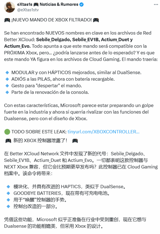 据推特博主@eXtas1stv的消息报道,近日有人通过解包文件中发现了新型Xbox手柄正在开发中,将与下一代Xbox兼容,并且已经存在于云游戏文件里。
