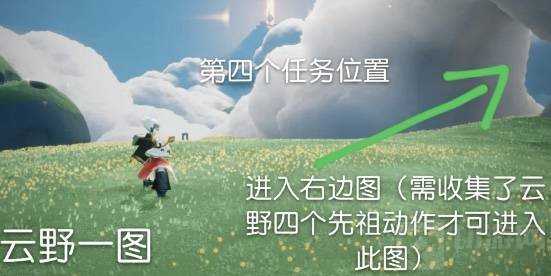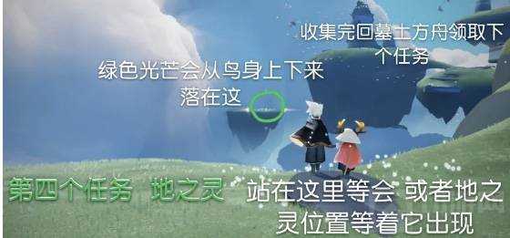 光遇中,地之灵就是绿色光芒,他的位置在云野地图的浮岛图中。