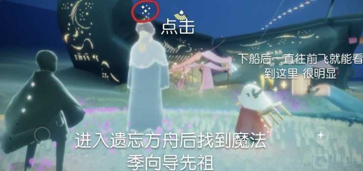 1、首先第一步要先去到墓土的遗忘方舟领取任务,否则是无法收集成功地之灵的,点击向导先祖头上的标志即可领取。