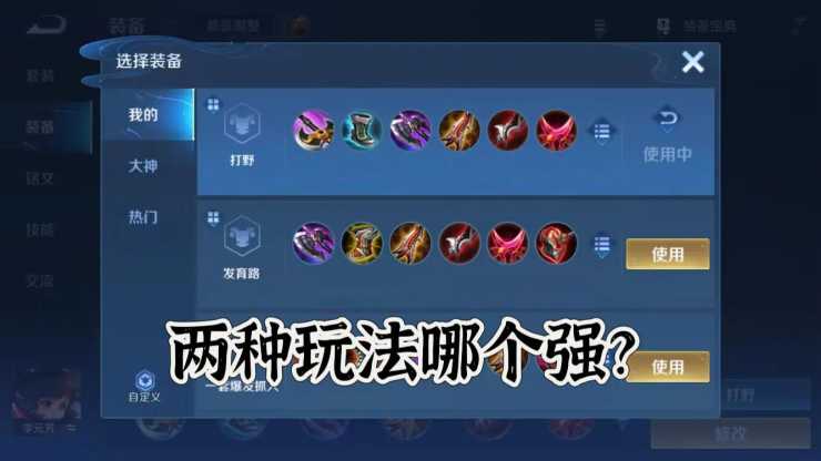 因此,出现了打野和发育路两种不同的玩法,但出装选择却很接近,差别主要在思路方面。