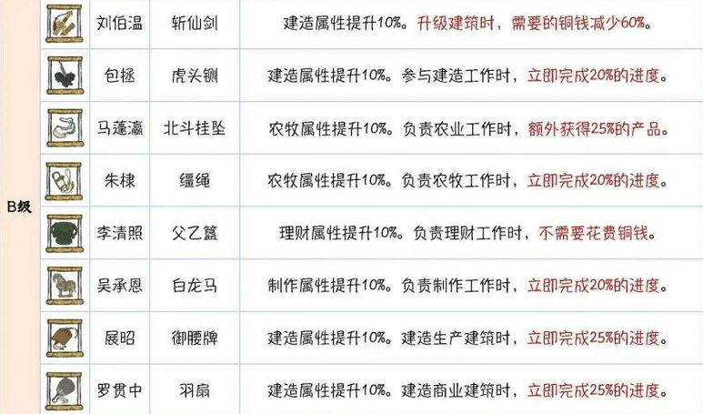 2、文俶的专属,建造属性提升10%,农牧属性提升10%。一件珍宝顶两个使用。