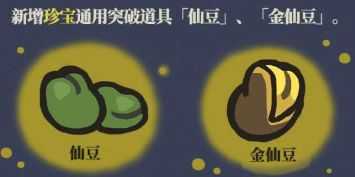 仙豆和金仙豆都是针对珍宝的突破道具,当珍宝达到一定等级上限后消耗以上材料进行突破,可以获得更高的等级上线,进一步提升属性。