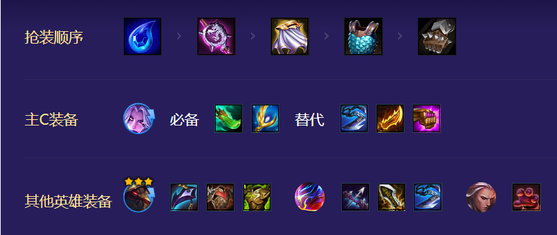 优先找到莫甘娜的青龙刀以及拉莫斯的反甲龙牙,随后补齐拉莫斯和莫甘娜的装备,佛耶戈带偷偷,烬负责捡多余的物理装备。