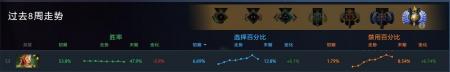 通过这两份数据,我们可以看到职业队伍依然热衷于这个英雄,这个英雄的热度没有削弱,依然BUG一样的存在,但是在路人局中,这个英雄还没有达到这么高的热火程度,就像小精灵一样,会玩与不会玩,是两种英雄。高端局,过去八周的选择百分比只有6.69%,处在中间段位,其他段位的选择百分比更低。