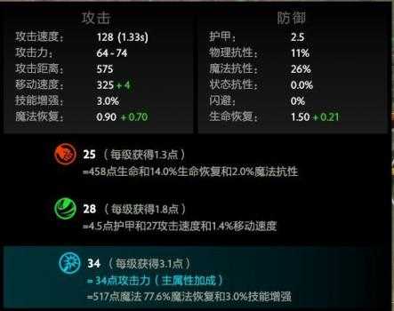 我们可以从魅惑魔女的基础属性中看到,他的攻击距离是575,三个等级的大招分别增加伤害16%/20%/24%。下面列表是魅惑魔女对一个25级亚巴顿模型进行普通攻击进行的伤害统计。